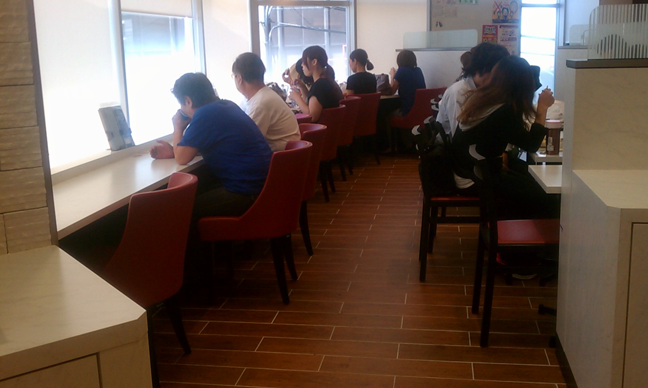堺筋本町・南船場のスーパーコーヨーの二階にある、イートインコーナー。スーパーで買ったものが、気軽に二階のイートインので食べられるので、近場のOLさんやお買物の帰りの人達で、なかなかの人気です。