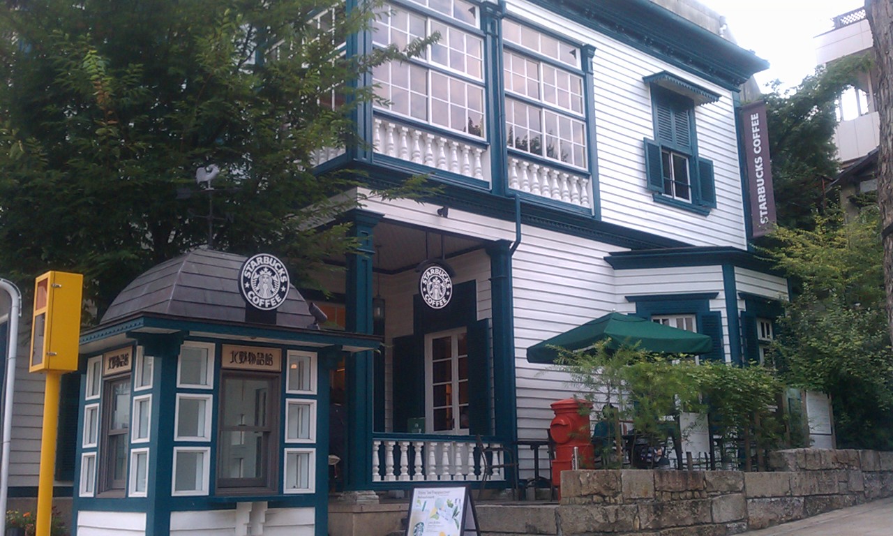 もうびっくり、めちゃめちゃびっくりの異人館の建物中で、ゆっくりスターバックスの飲み物が楽しめる。