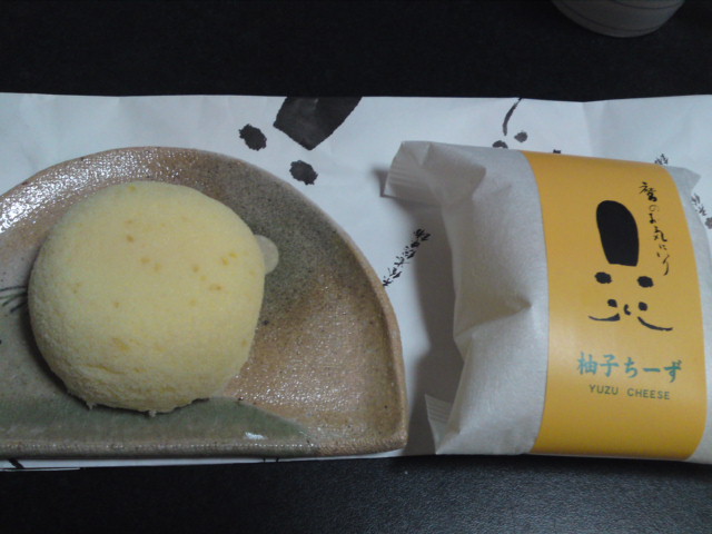 京都の市営地下鉄限定販売の麿のお気にいり 柚子ちーず。偶然四条烏丸の地下鉄の改札近くで、人だかり出来ていたので気になって、後日改めて覗いたら市営地下鉄限定のお菓子と言うので、試食をさせてもらい美味しかったので、1個150円のバラをお土産に。