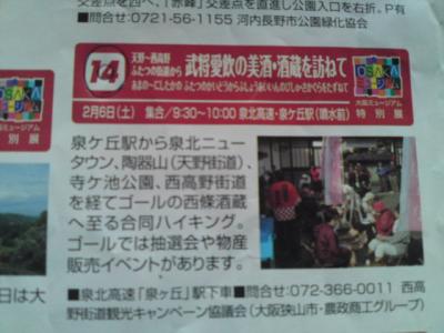 2月6日に行われるハイキング、南海線の泉北高速の泉ヶ丘下車で集合は噴水前。
