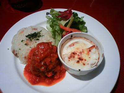 これで950円かと思う内容で、バターライスは硬くて口の中でボソボソデ、小さなハンバーグとサラダに、グラタンはポテトフライが中に入っているだけの具で、これはアカン・・・。
