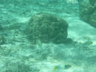 朝食後はシュノーケリング。ヒルトン前は少し泳ぐとお魚がいっぱい。餌なし...