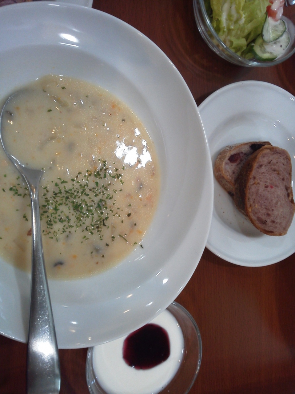 いつもタイミング悪くて来れなかったり満席で諦めてましたが、今日は入れました!パン食べ放題のランチにしました。