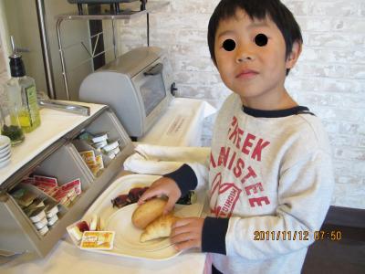 朝食はバイキングです。パンの種類が多いです。焼きたてではなさそうですが、美味しいです。