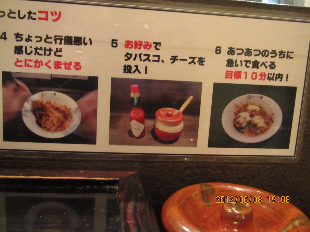 好きなミートソーススパゲティです。ラーメンのどんぶりみたいなお皿に入っています。