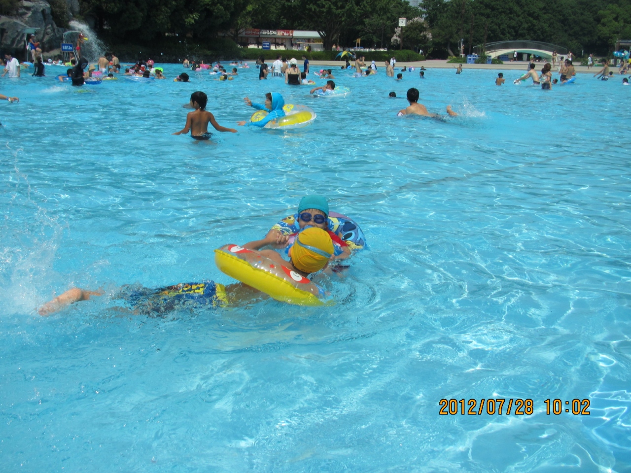 午前中からレインボープールで遊んで、夕方花火を見るので疲れてしまいますが、最後まで見ます。
