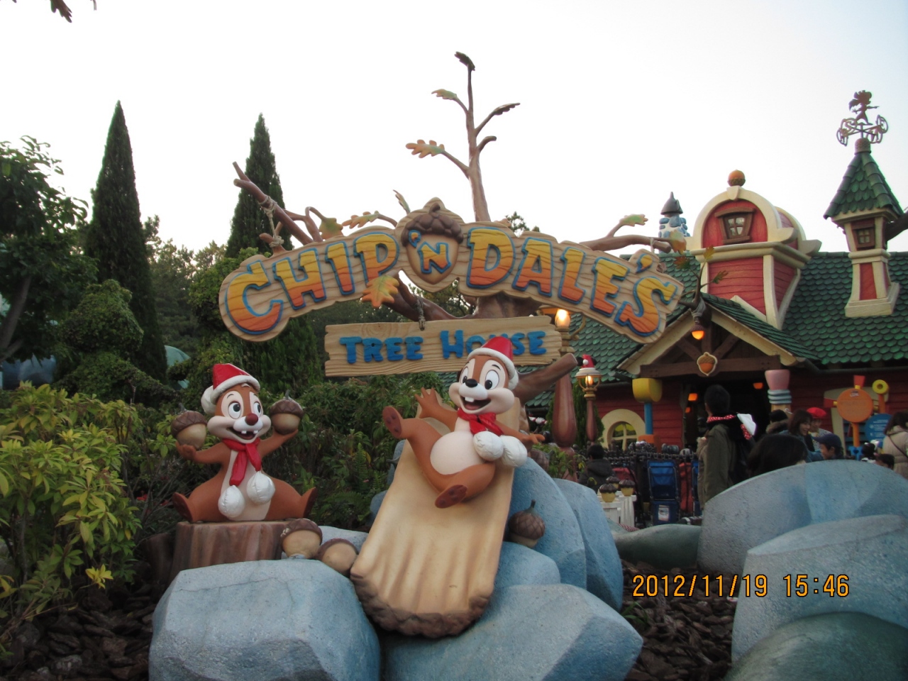 木の中に階段があって、チップたちの家を見ながら二階に上がります。