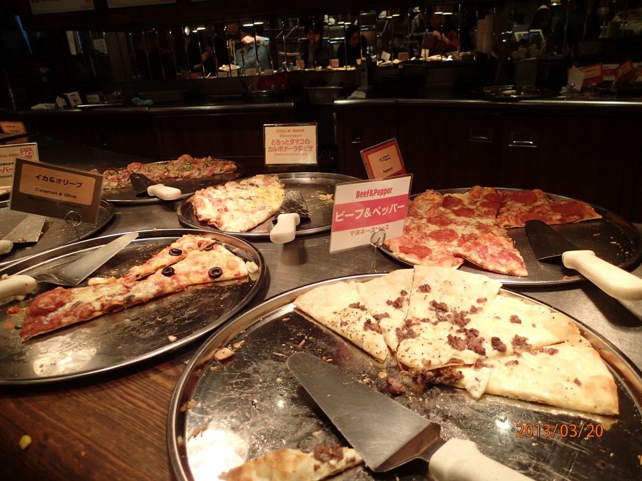 入るのにも並ぶし、入ってからもピザを取るためにまた並びます。