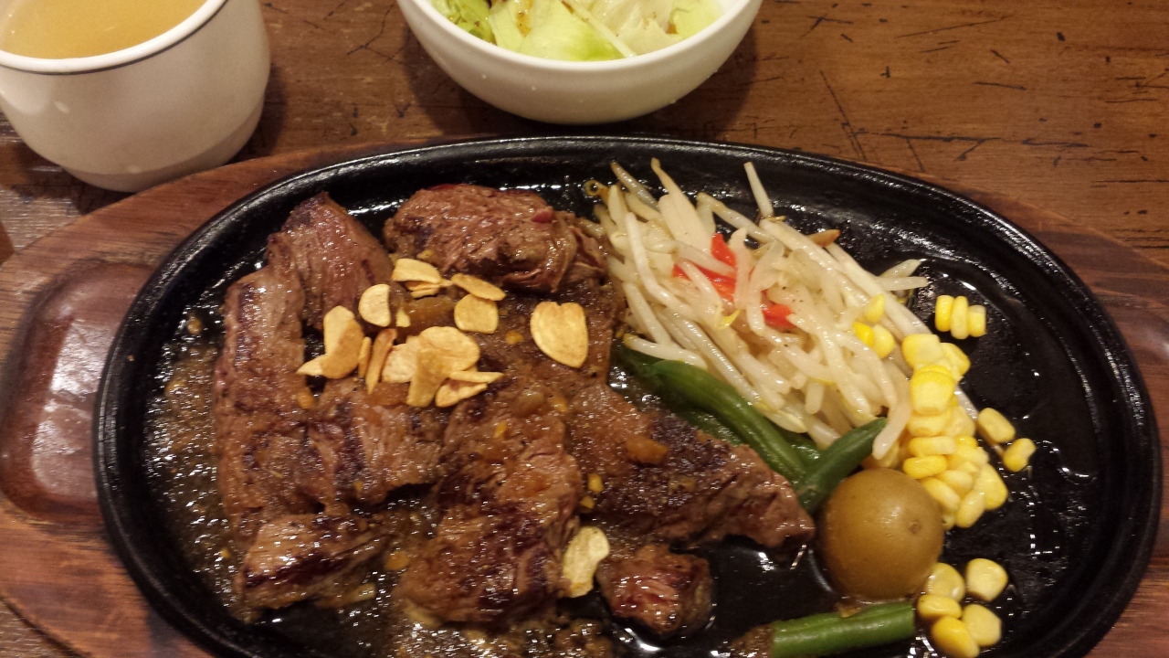 お肉のメニューがいろいろあります。定番っぽいのを選びました。スープ、サラダ、ライスのセットでした。洋食屋さんなので、スープはなんとなくポタージュを期待していたのですが違っていて少々がっかり。サラダもレタスのみで…。付け合せにもやしというのも安っぽい感じがして(味もなくて)¥1600でこれは…と、残念でした。。- 旅行時期