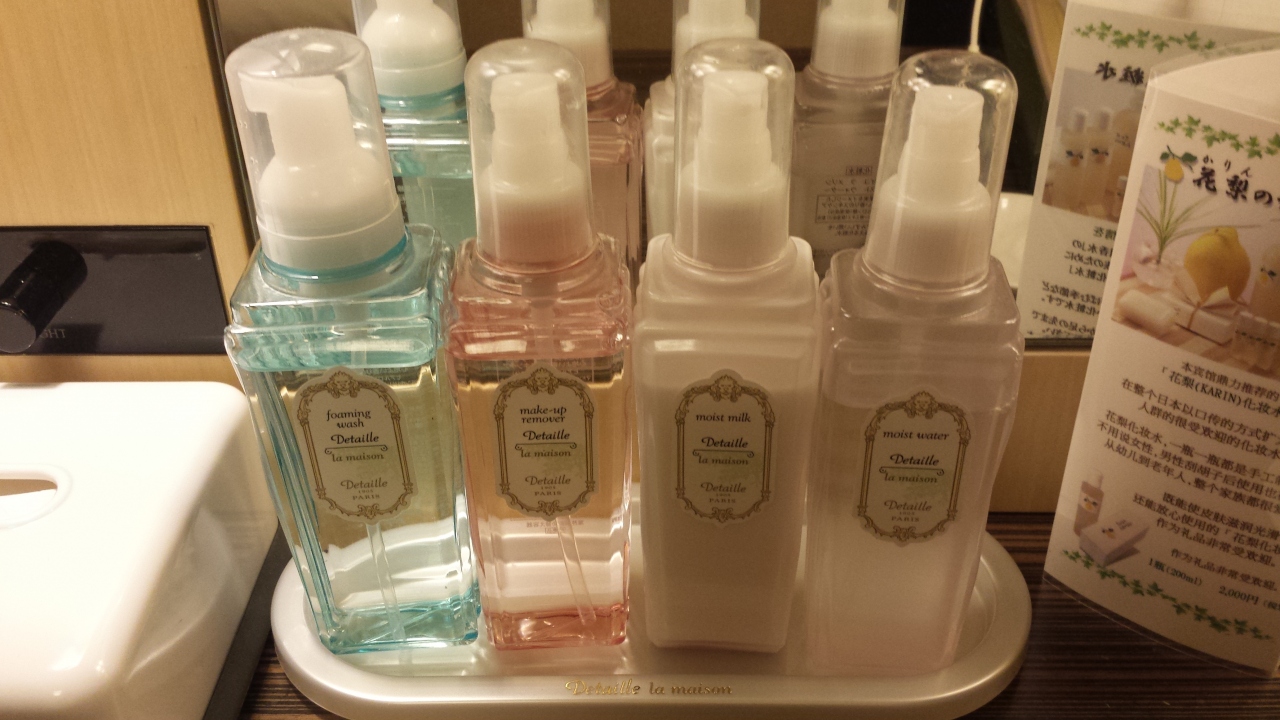 空いていたとのことで女性専用階に変更してもらえました。化粧水や乳液などがボトルで置かれていました。