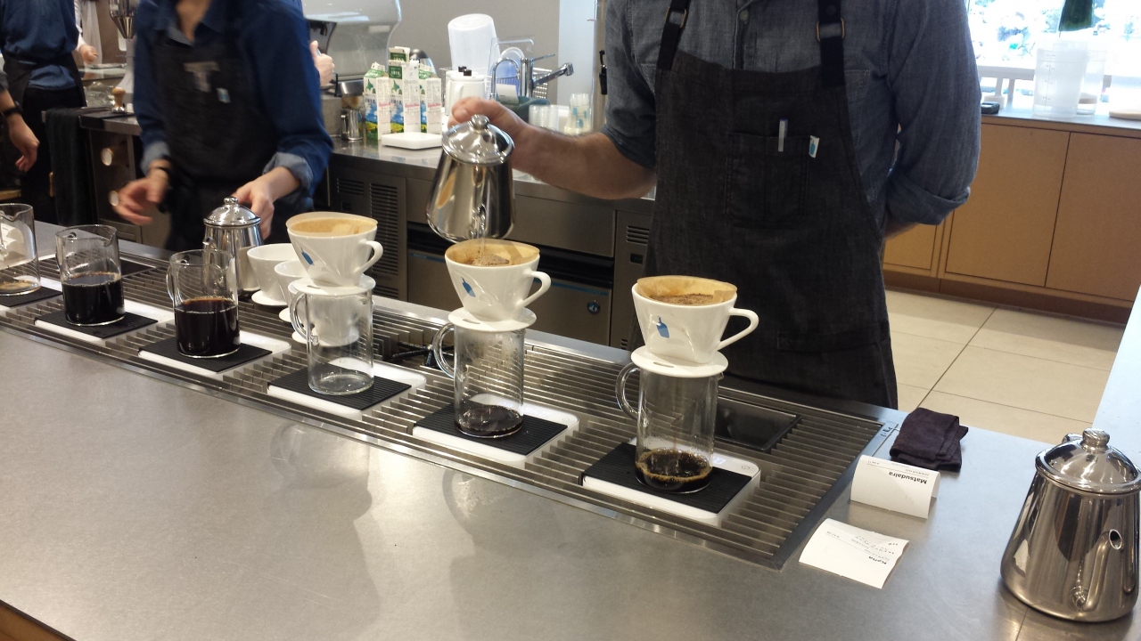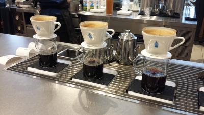 とても明るくて開放的です。コーヒーを一杯ずつ丁寧に淹れてくださるところが見えます。外国人スタッフが淹れておられて、それだけでイメージがかなりよく見えます。