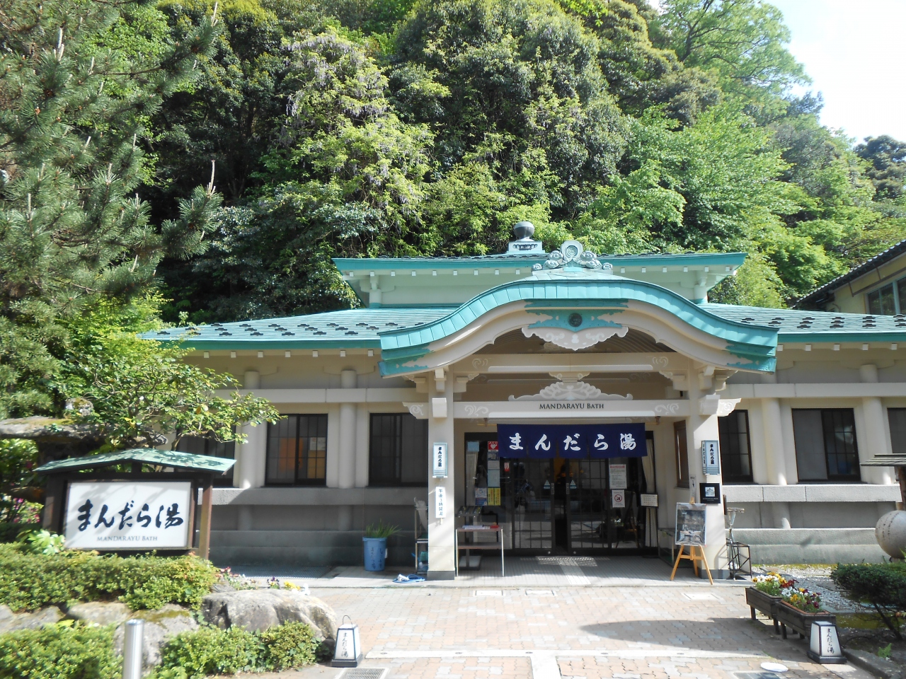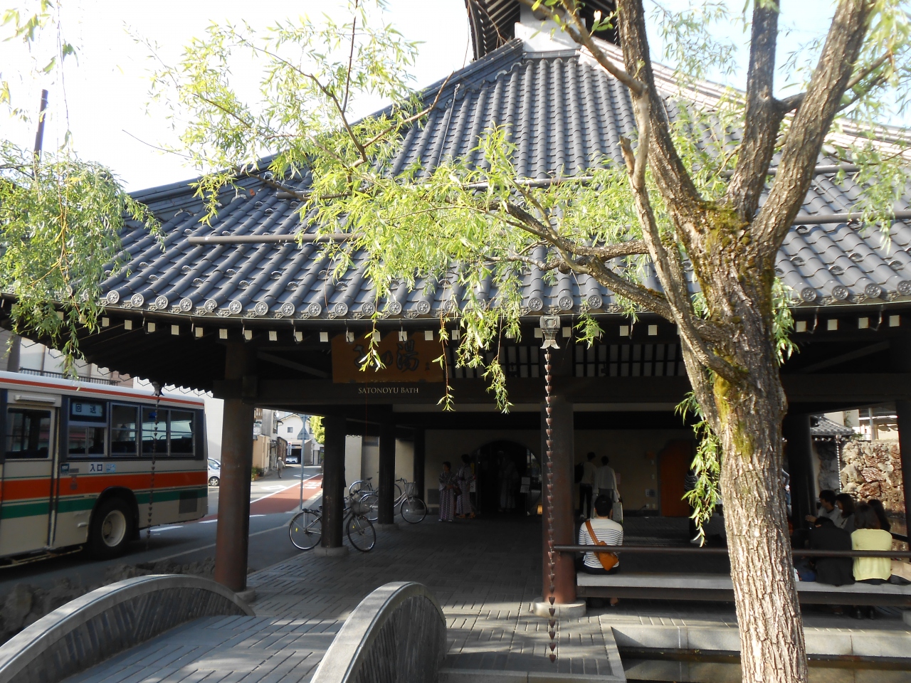 城崎温泉駅から徒歩5分程。お土産物屋さんが並んでいるところにあります。