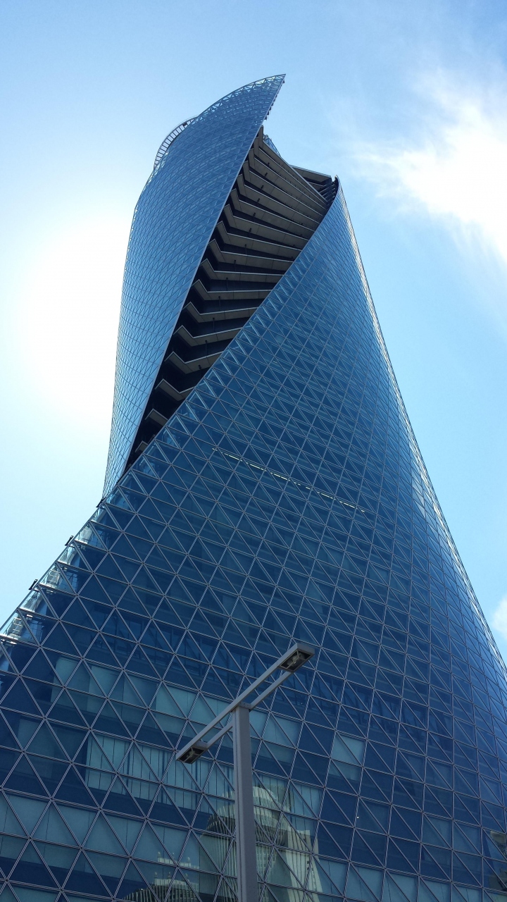 名古屋駅から徒歩3分程。ねじれながら空に向かって登って行くような形状のビルです。