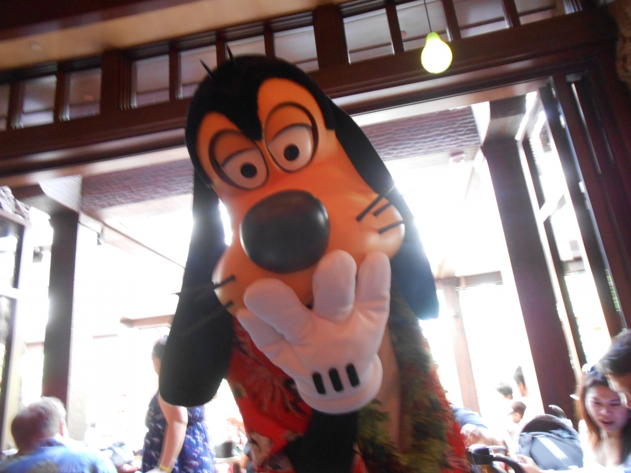 ミニーやグーフィーが店内を回ってきて、一緒に写真を撮ったりできます。
