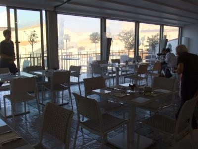 朝食会場は、最上階にあり、テラスでも頂けます。山側に向いているので、モンレアーレあたりが望めます。