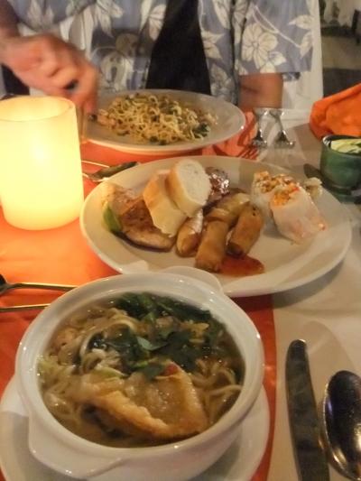 今回は、オールインクルージブのスウィートプランをホテルサイトで予約、1泊二人で300ドル**ちょっと、時期によって異なりますが一人当たり15,000円ほどで、24時間、特別なお酒やロブスター以外はフリー、もちろんお部屋の冷蔵庫もルームサービスも含まれているので、大変便利でした。食事も6つあるレストランやカフェ(メインダイニング、イタリアン、中華)が充実していて、週4回ほどあるディナーショーもフリー、どの食事も美味しくいただけました。ただし量が欧米系の方用なので多いので、ハーフサイズでちょうど日本人サイズです。