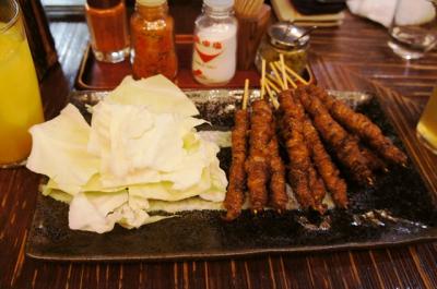 とり皮はトルネード巻。130円ですがふつうのとり皮と違う。