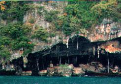 バイキング・ケーヴ(ツバメの巣の洞窟)です。今も採っているそうで、細い...