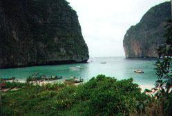 マヤ湾です。岩に囲まれ、とても静かなビーチです。砂浜から素足で山に登る...
