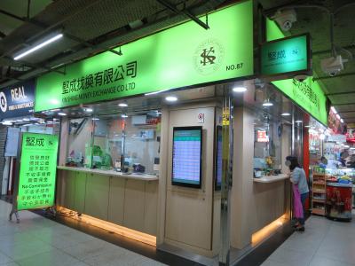重慶大厦、奥の方の緑色のお店で両替しました。