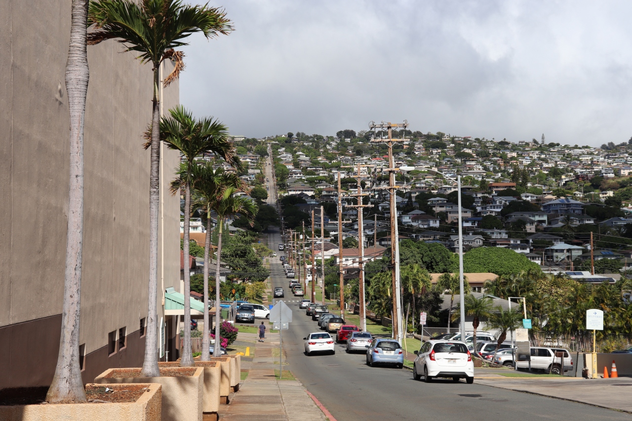 一直線の坂道とワイキキから見るのとは違ったダイヤモンドヘッド