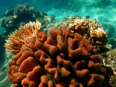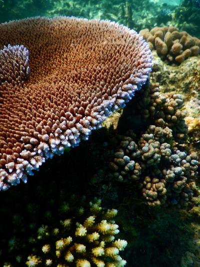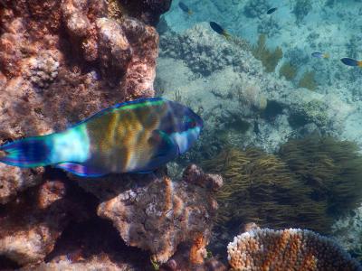 グリーン島ではさっそくシュノーケル。色様々な珊瑚礁が出迎えてくれます。