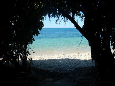 グリーン島の青い海。水色と青と、絵めらるとグリーン。