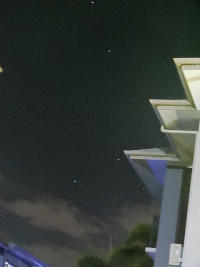 おわかりいただけるだろうか。宿から見える沈みゆく南十字星。下方に三角形...