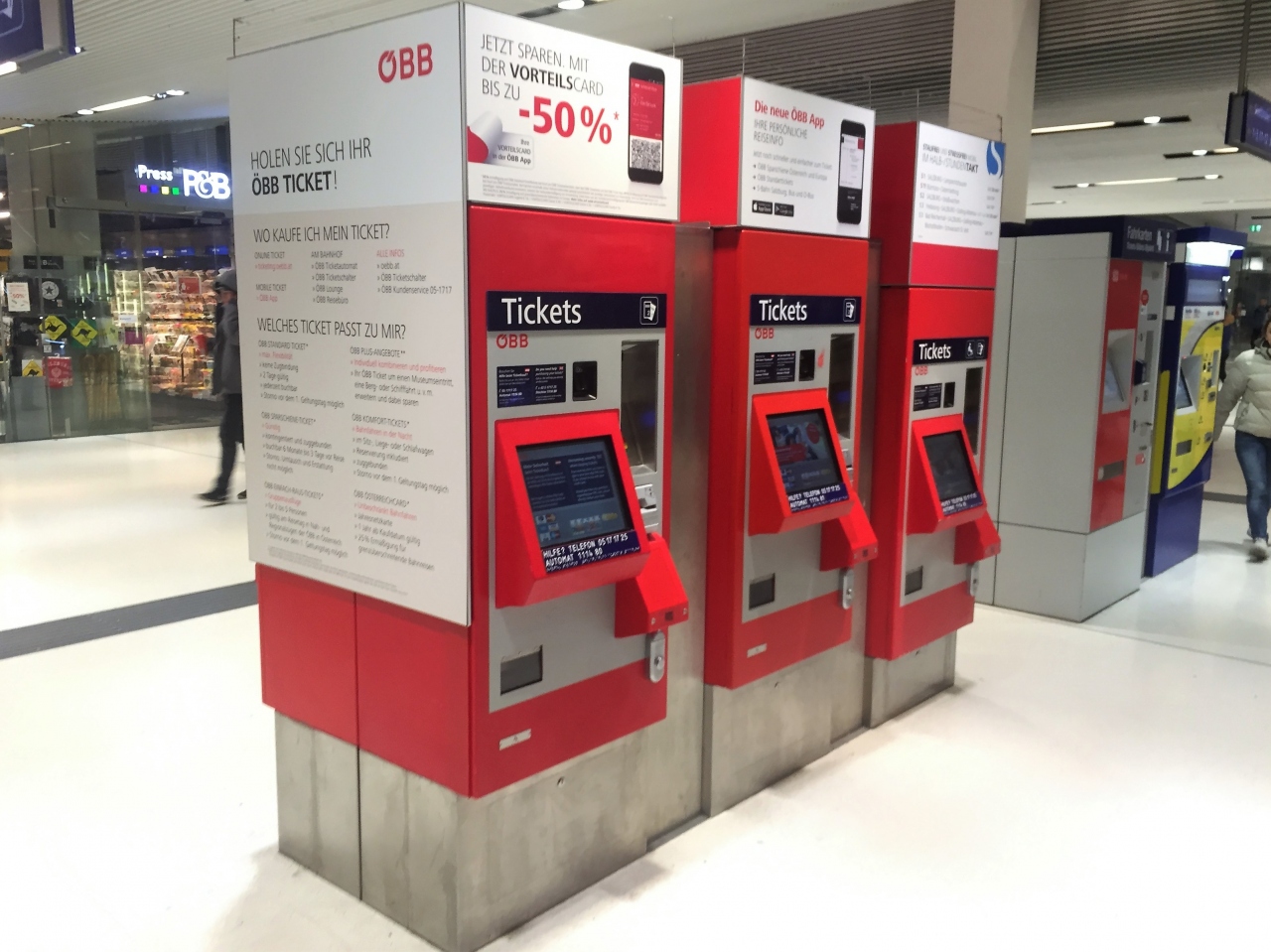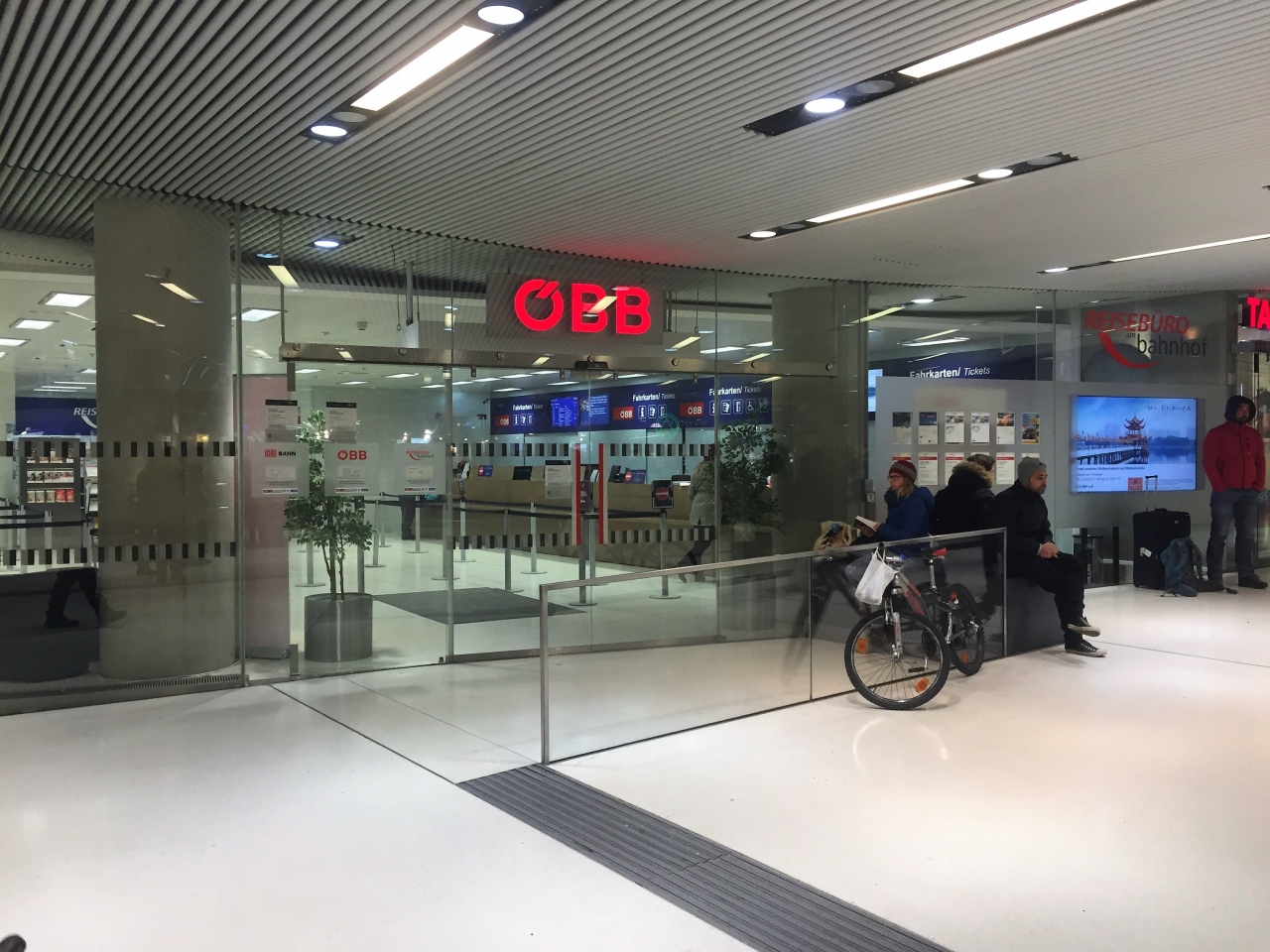ドイツ国境に近いだけあって、ドイツ鉄道DBも入居(OEBBの窓口相向かいにありました)しており、DBの切符も買えるようです。