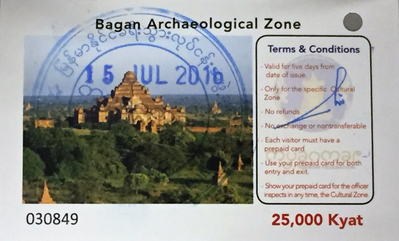 到着時、外国人は半強制的にバガン入域料25,000チャット(2016年7月現在)を支払わされます(^_^;)