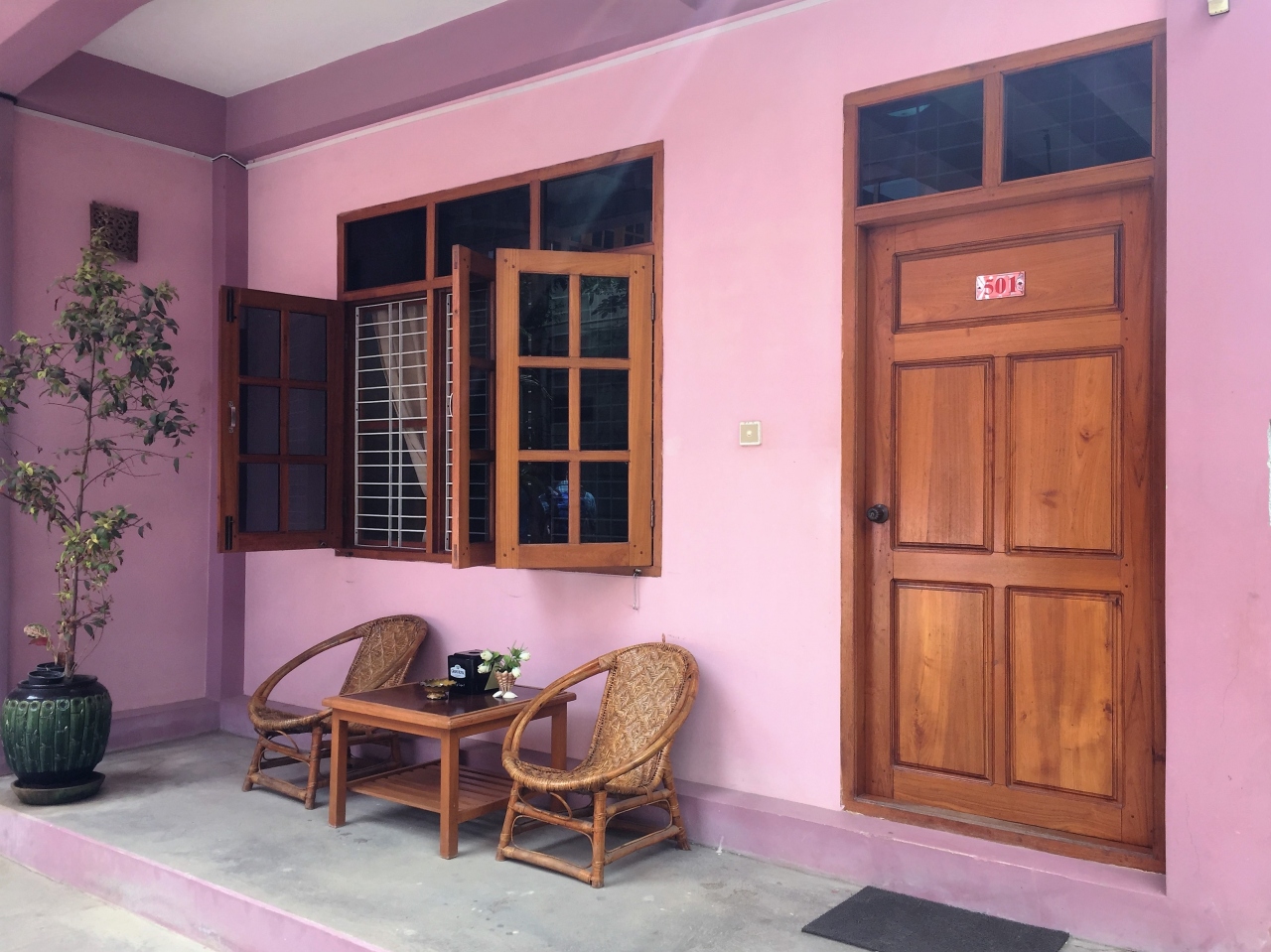 なんか廃墟のビルみたいな入口で、「ここでいいのかな?」「どうみてもホテルの入り口じゃないでしょ?」というのが、第一印象でした。