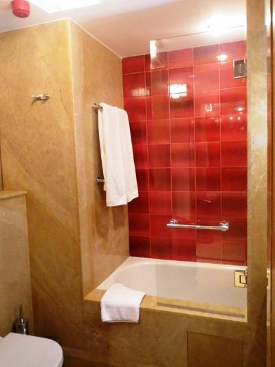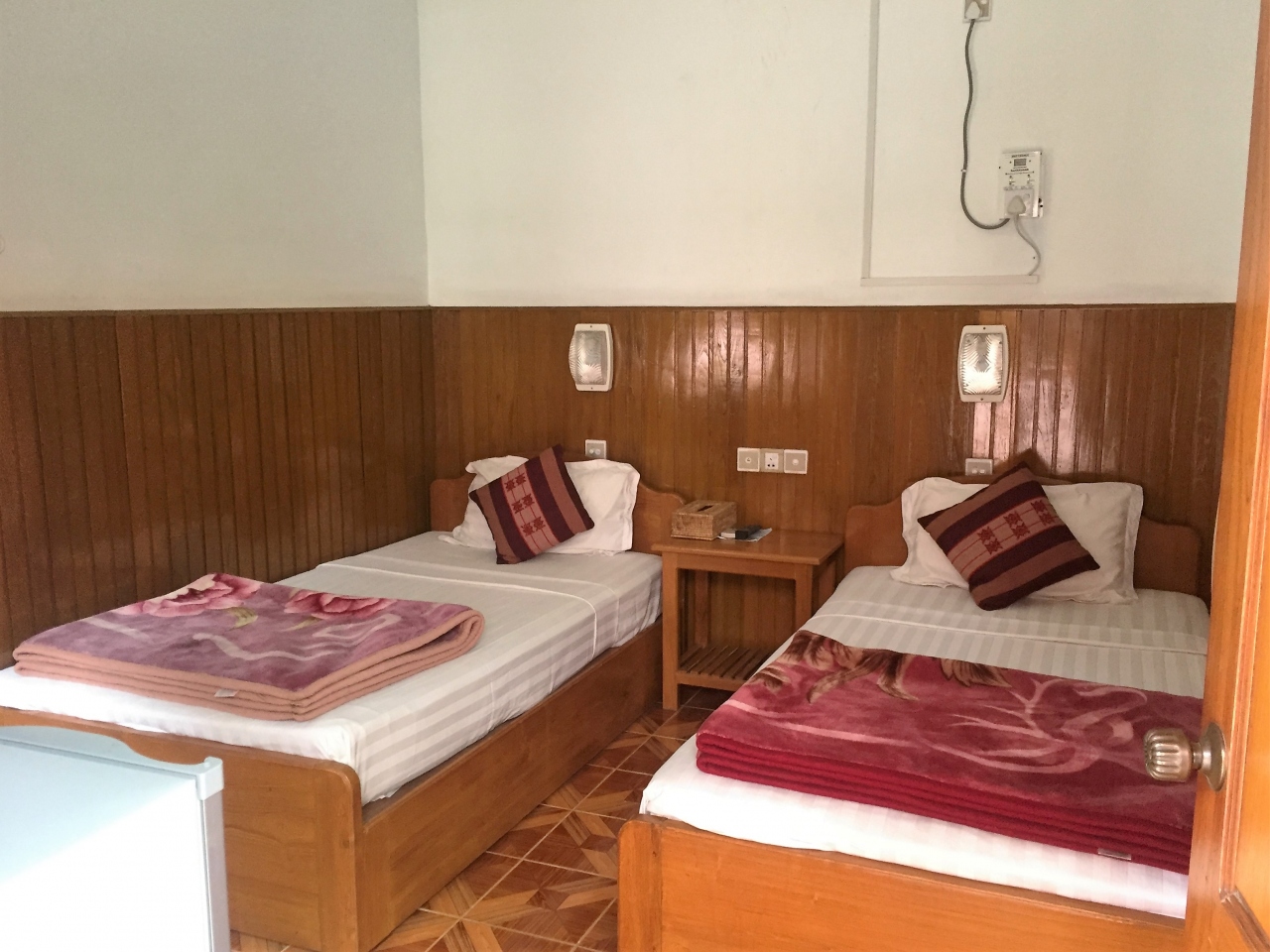 チェックイン時間より早く到着したため、当初予約していたシングルルーム(バス・トイレ共同)に入れない・・・とのことでしたが、グレードアップして空いてたツインルーム(バス・トイレ付き)に通してくれました(*^-^*)