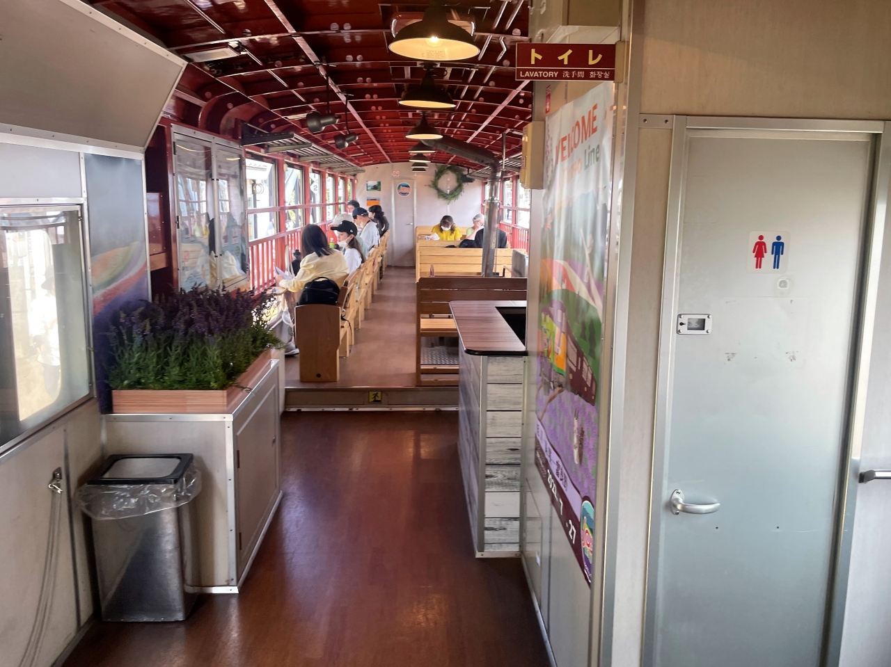 車内にはラベンダーの花が飾られ、走行中は車内アナウンスで沿線を紹介してくれます。- 旅行時期