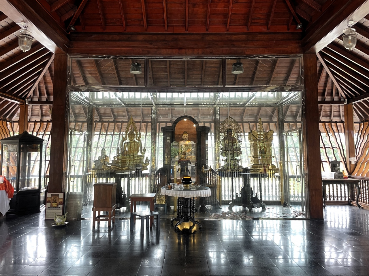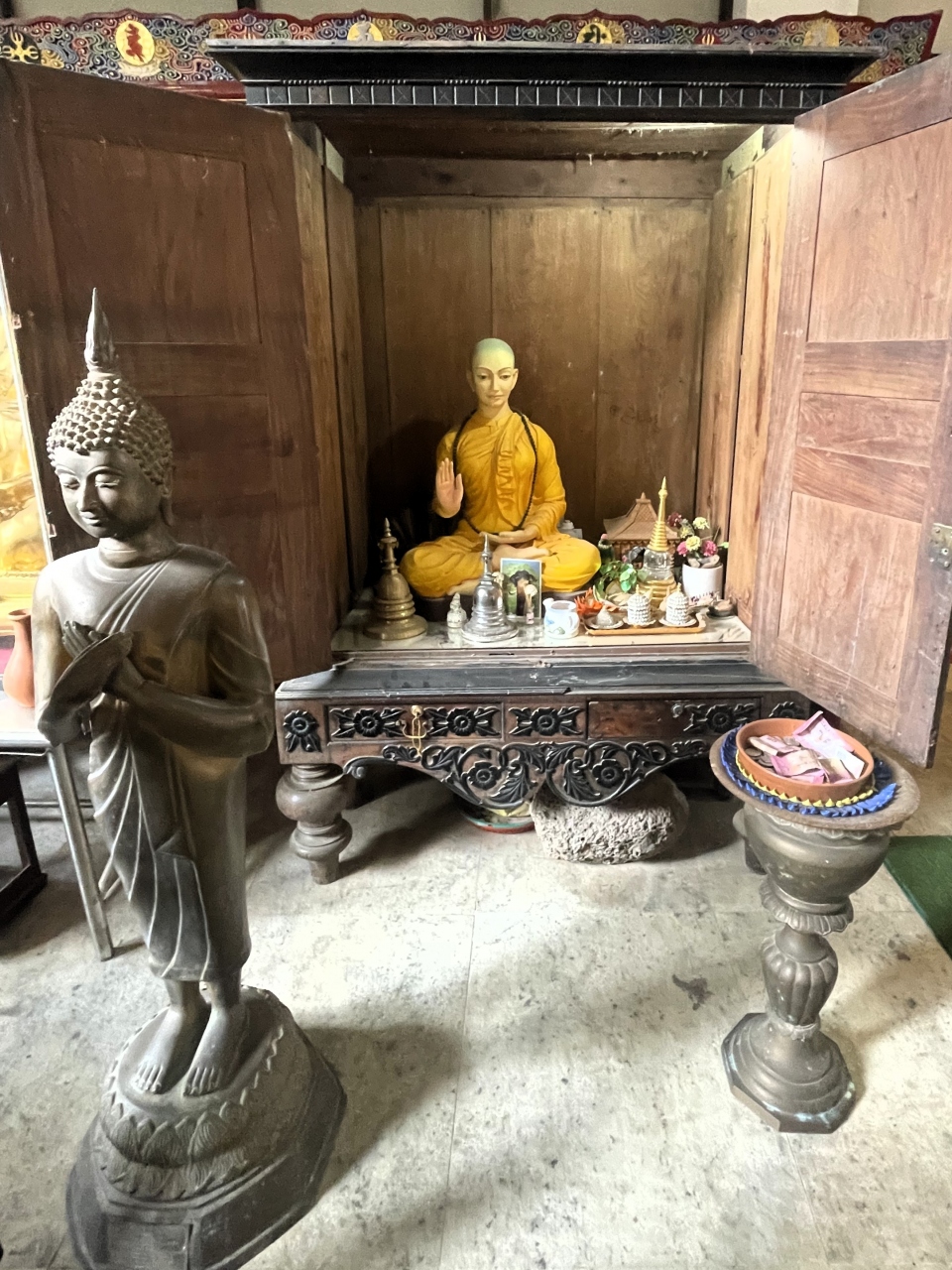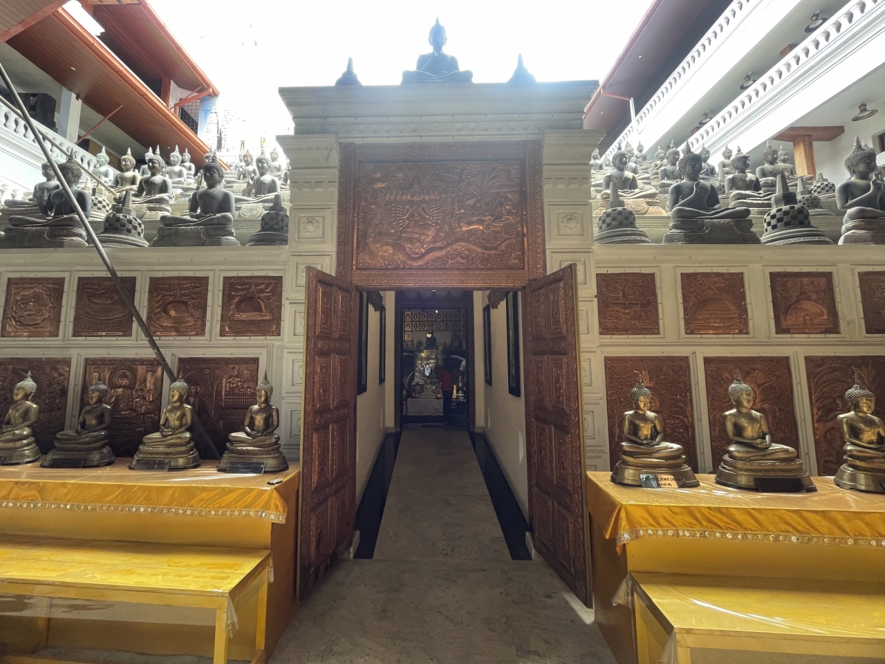 寺院を取り囲むように、4辺に金色の仏陀像が並べられているのが印象的でした。- 旅行時期