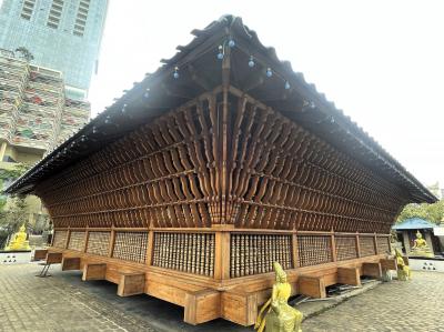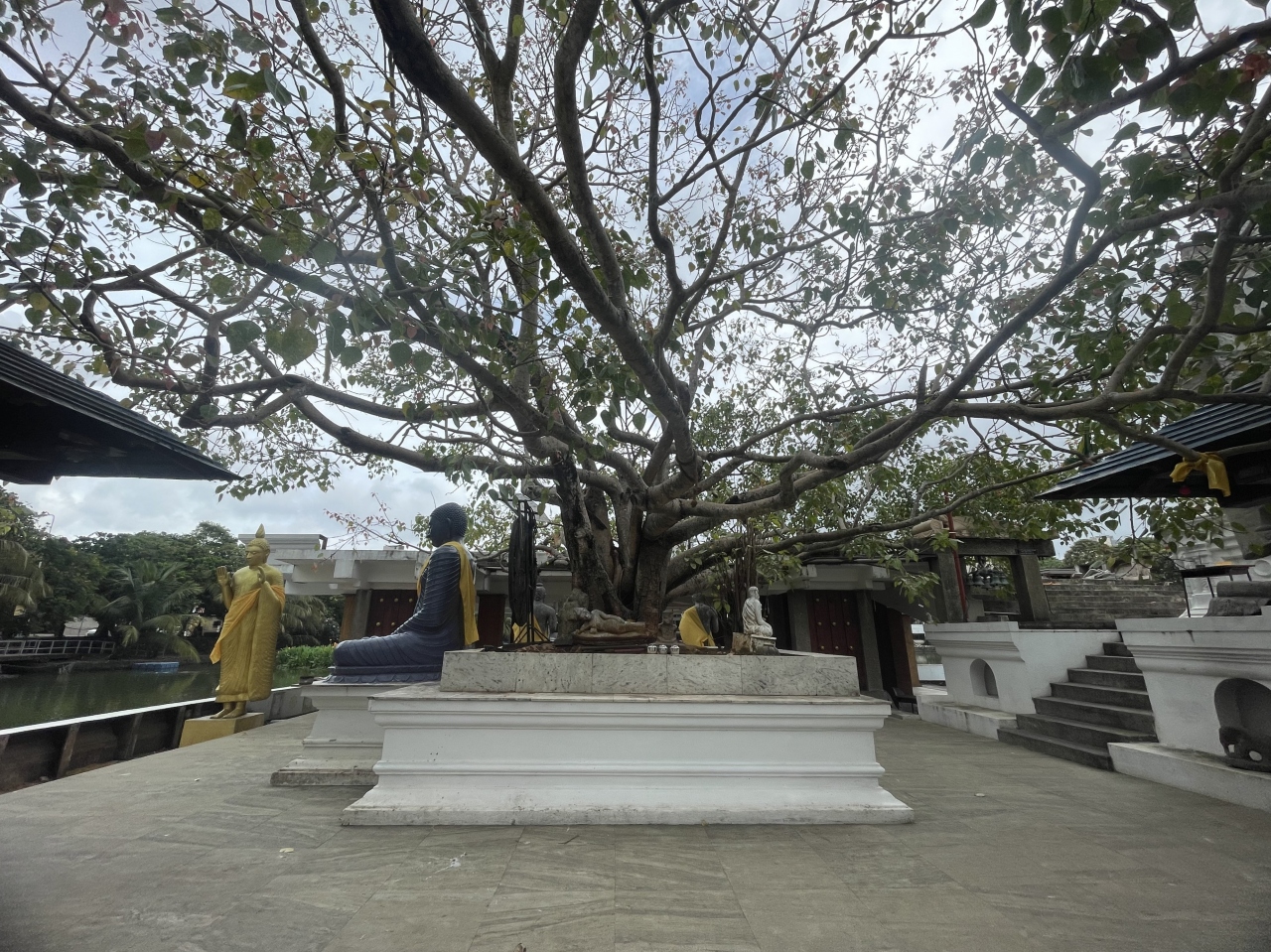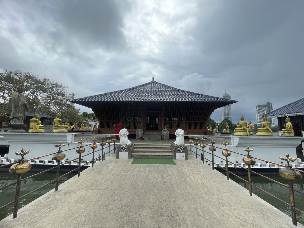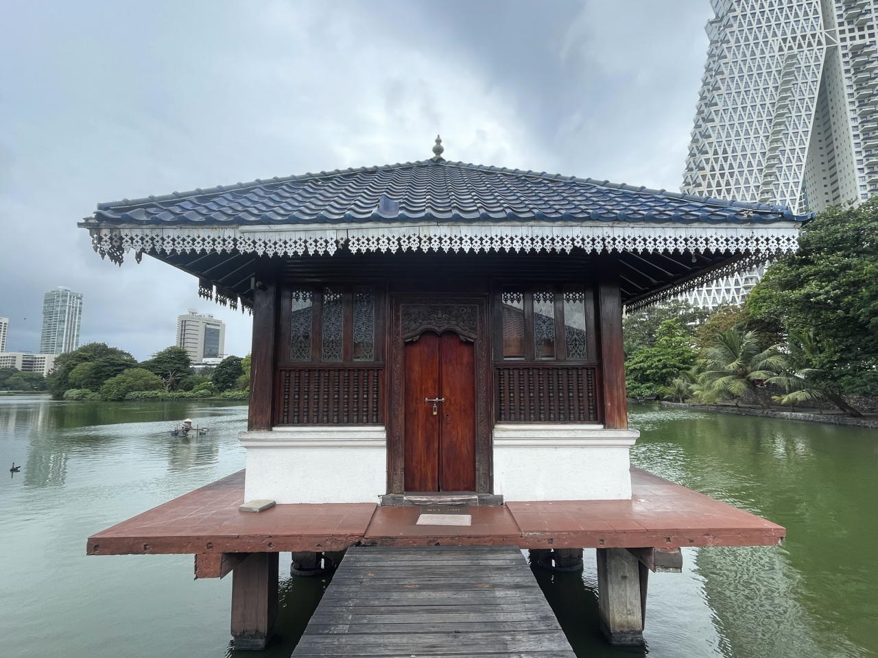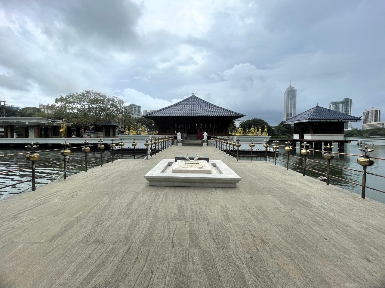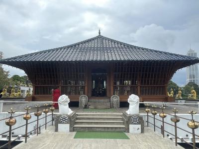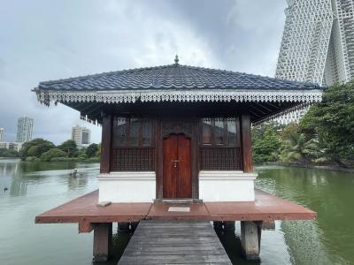 ベイラ湖に浮かぶ、ジェフリー・バワによる仏教寺院ですが、管理はガンガマーラ寺院によって行われているようです。