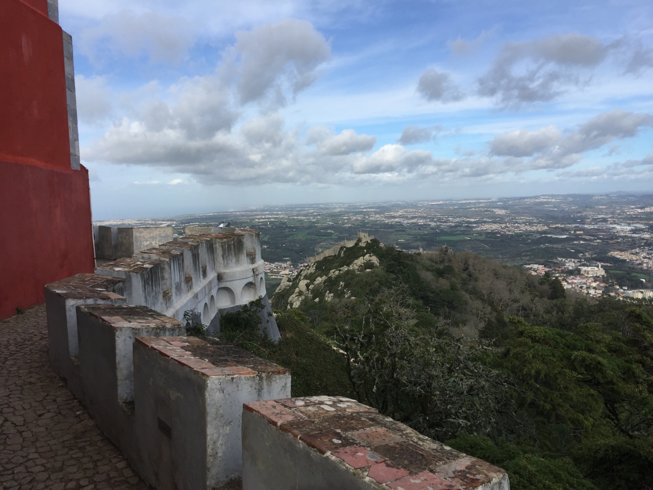 シントラ駅前から434番バスでペーナ宮殿まで行けます。 バスを降りたところにある券売機でチケットを購入しました。 ムーアの城跡もセットで18.05ユーロ(冬季)です。