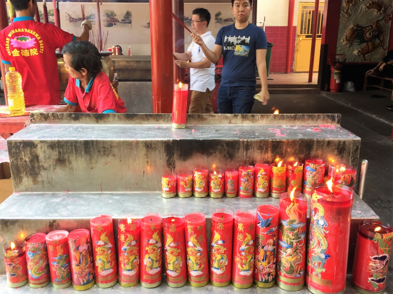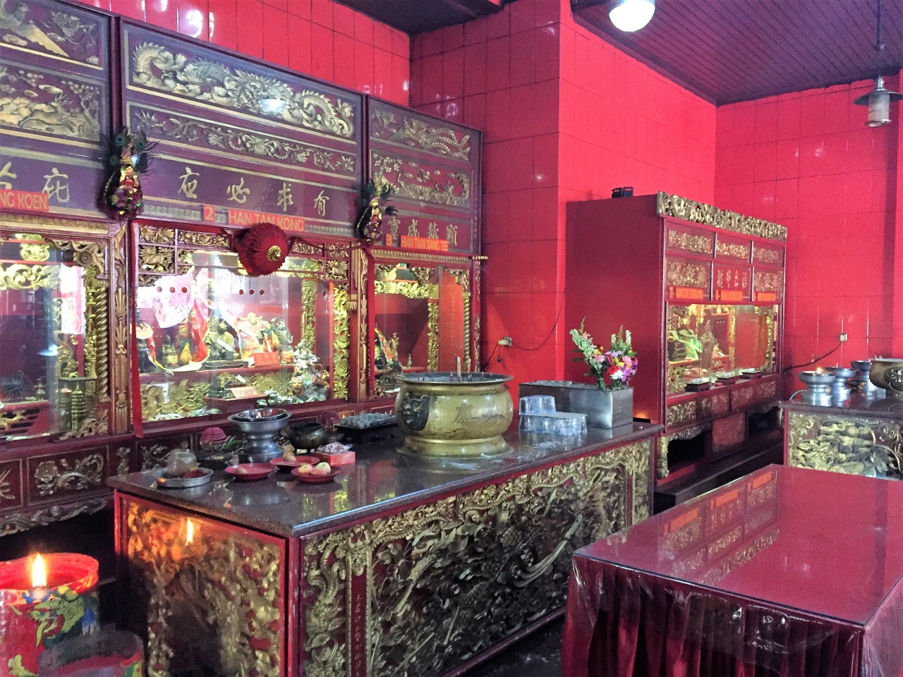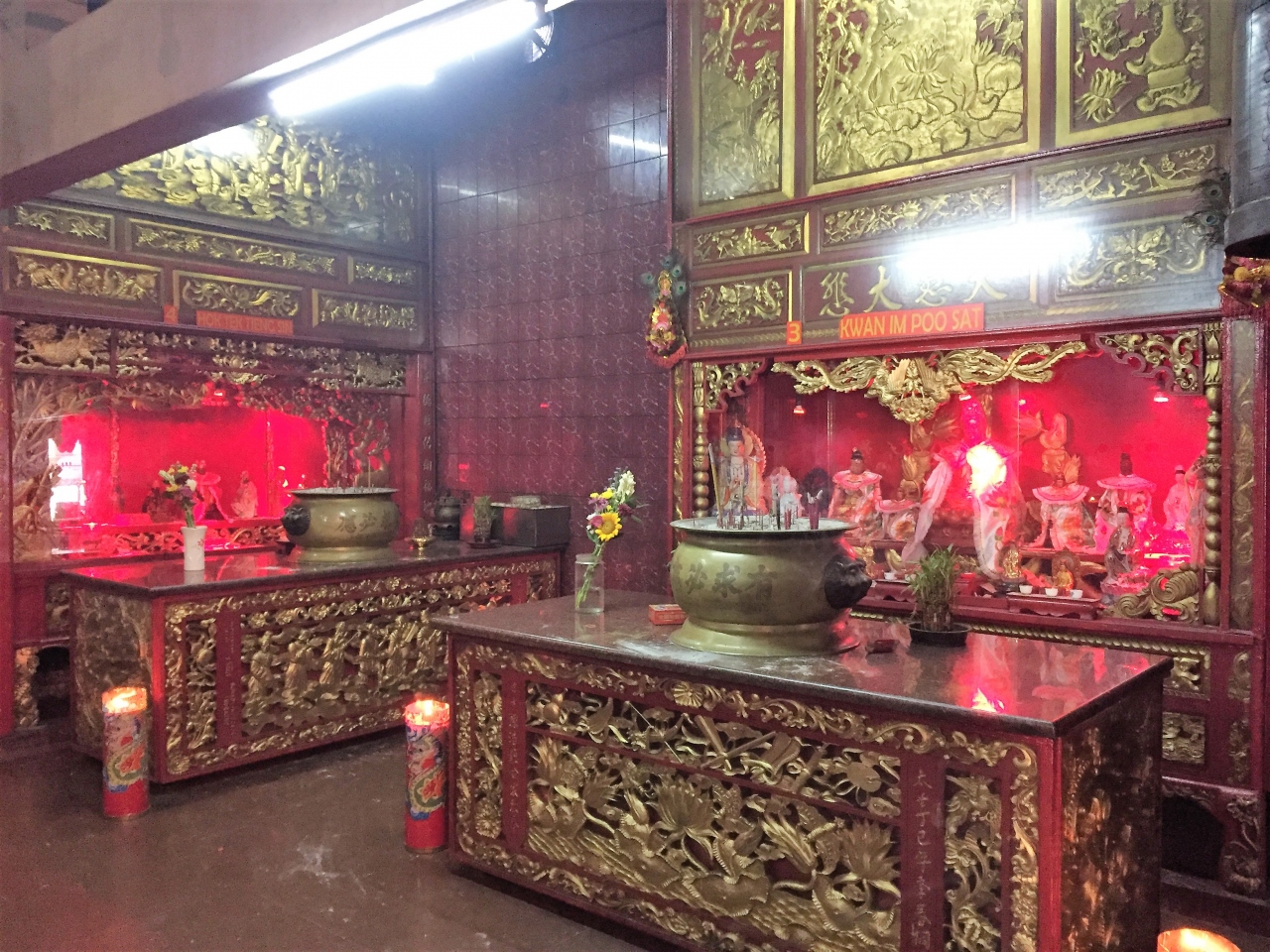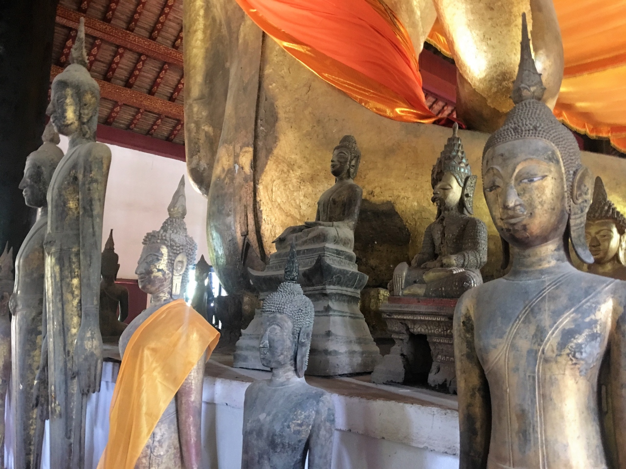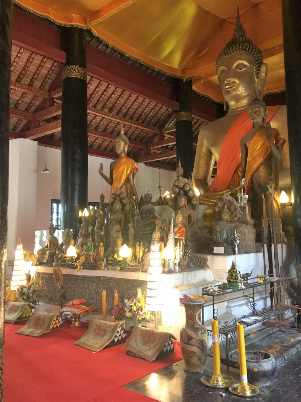 本堂に入ると、大きな柱と黄金のブッダ像が目に入ります。そして、まわりに多くの仏像が囲むように並んでいて、圧巻でした。- 旅行時期