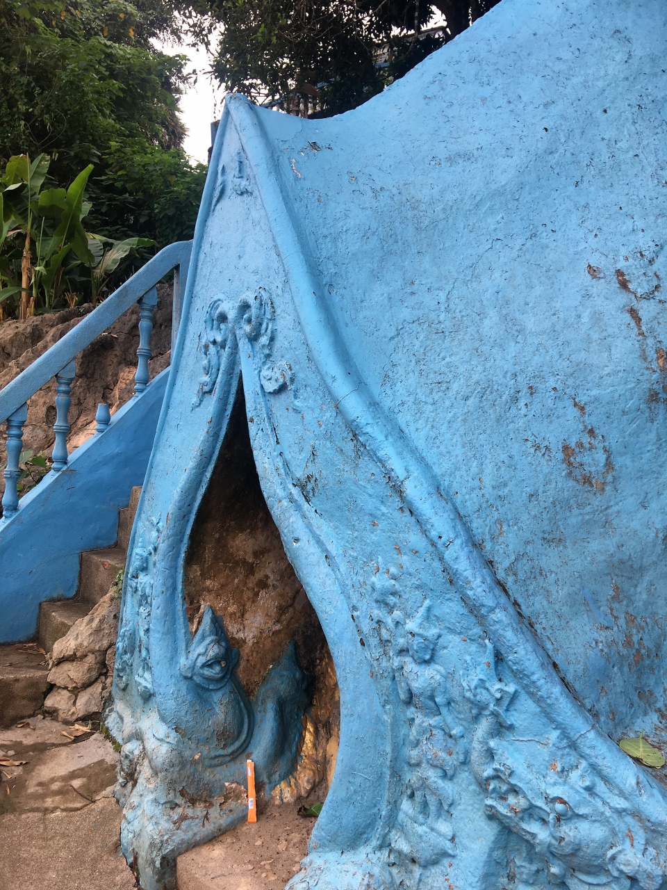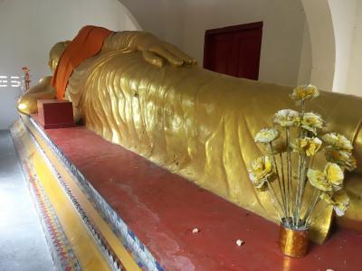 寝仏像や大仏様などあり、奥の階段を降りていくとメコン川に出ます。
