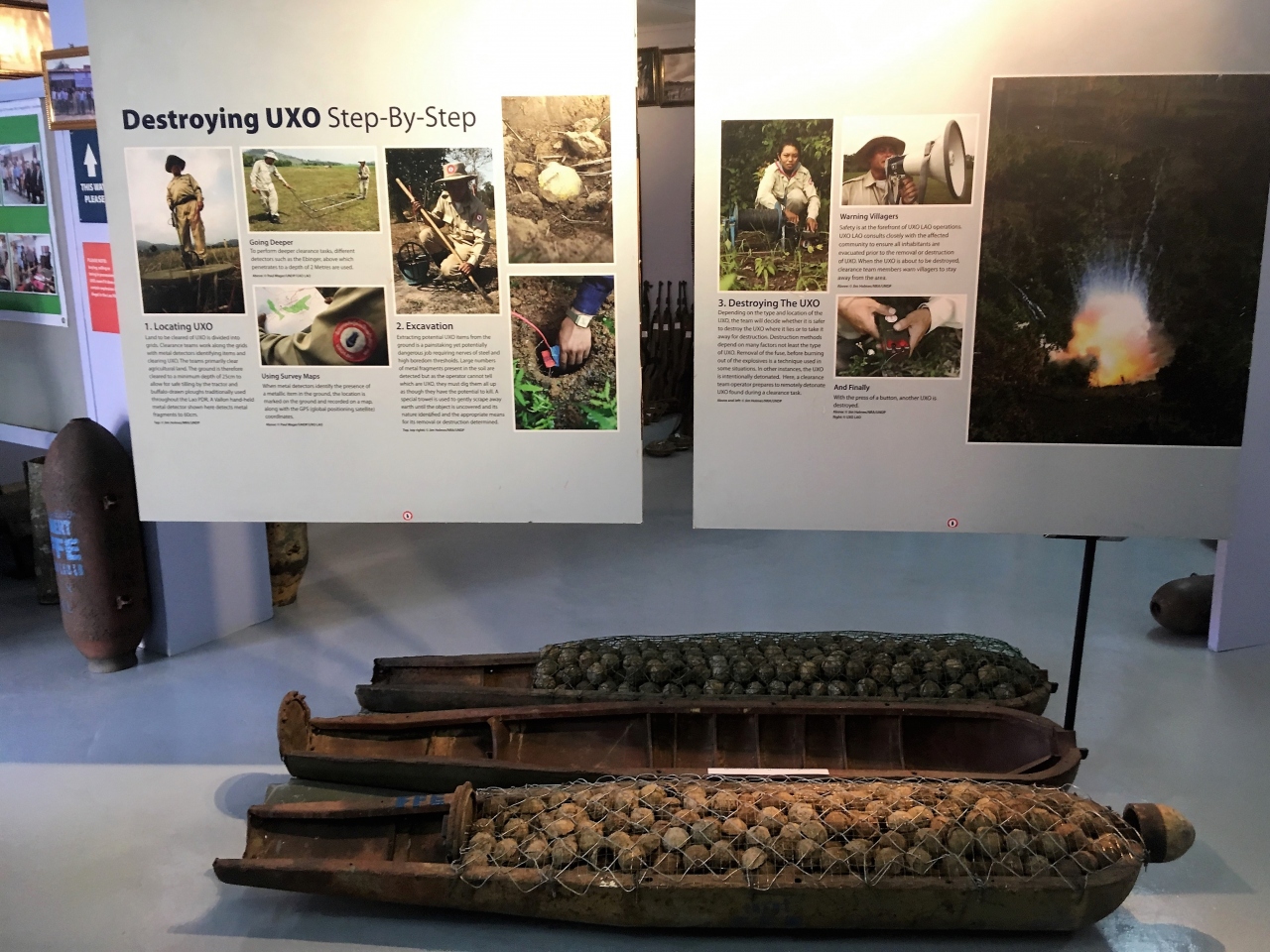 ’70年代の内戦で落とされた無数の爆弾、そしてその処理の様子が展示されています。