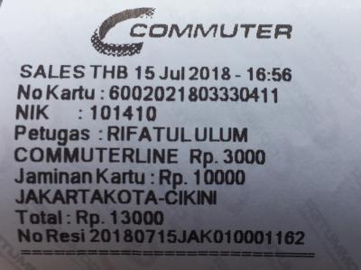 入場料はRp.15,000なのですが、JakcardというICカードがないと倍額のRp.30,000請求されます。要注意です!