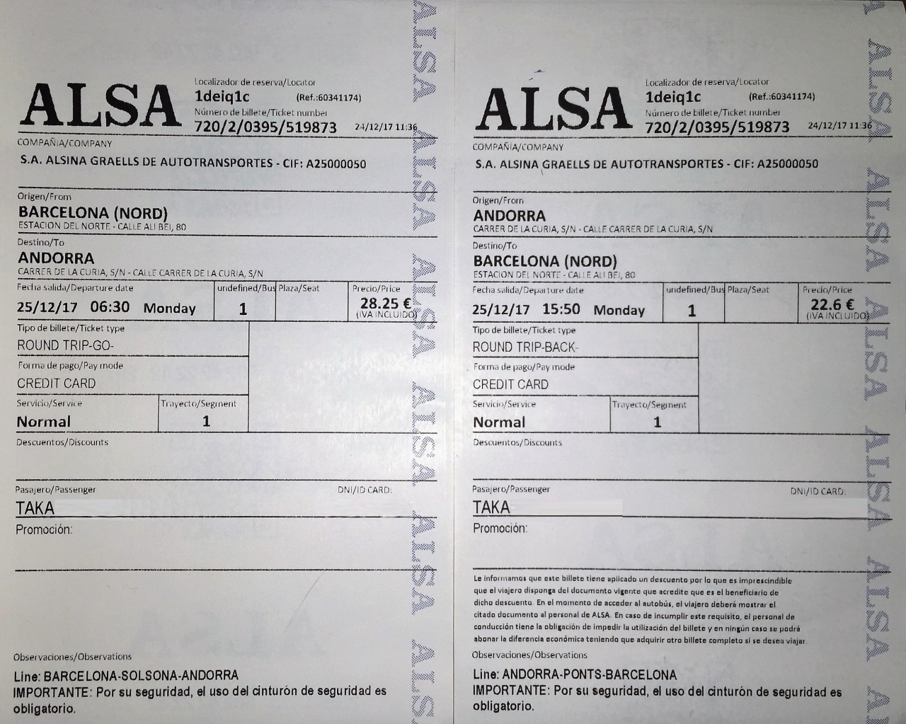 2017年12月25日(月)にバルセロナからの往復に使いました。