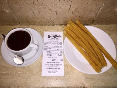 しかしホットチョコレートに浸すと、チュロスの味が分からなくなるのが…(・_・;