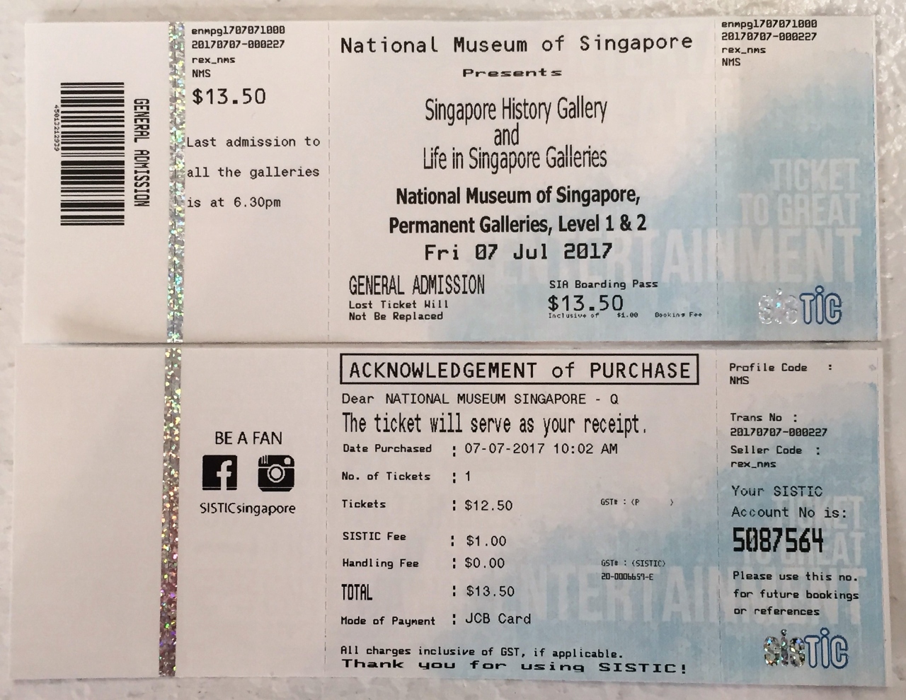 入場料は大人15ドルですが、シンガポール航空のボーディングパスを見せると、10%引きの13.5ドルになります。