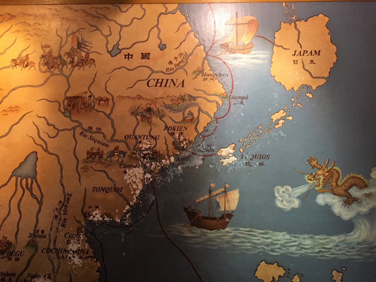 大昔の世界地図で、ヘンな形の日本列島が描かれています(^_^;)
