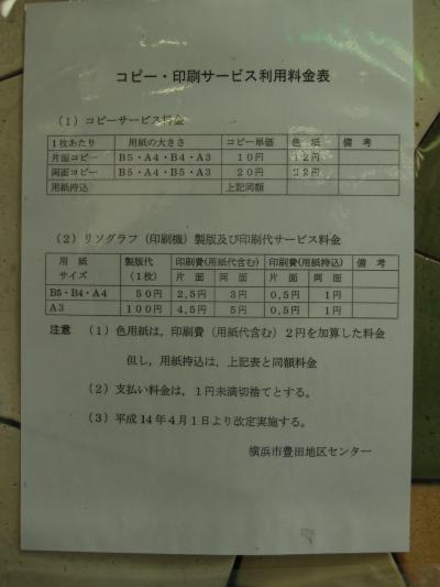 戸塚駅西口の再開発区域を外れた戸塚共立第1病院手前の学生服店「大雅(たいが)」には「カラーコピー 30円 コピー 10円」の看板があり、京セラ社製のコピー機が1台あって、白黒5円/1枚、カラー30円/1枚でサービスしていたが、昨日(2月12日)に寄ったら「コピーは出来ない」とけんもほろろに断られた。