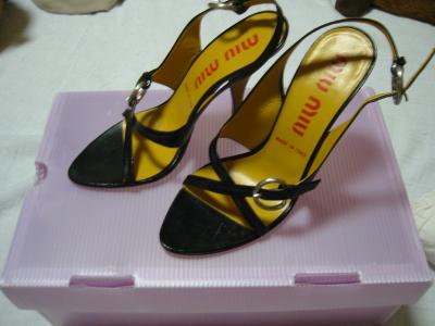 MIUMIUのサンダル。黒と黄色のコンビが垢抜けてて本当にかわいい。ア...