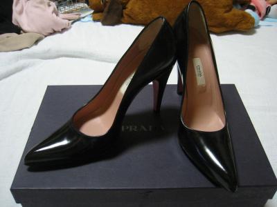プラダの黒パンプス。アウトレット新品で20000円で購入。エナメルなの...