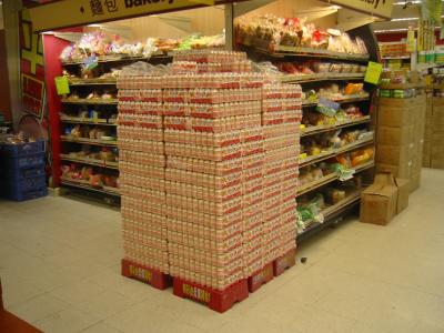 大量のヤクルト。一体何個あるのか検討もつかない。私の身長くらい(158...
