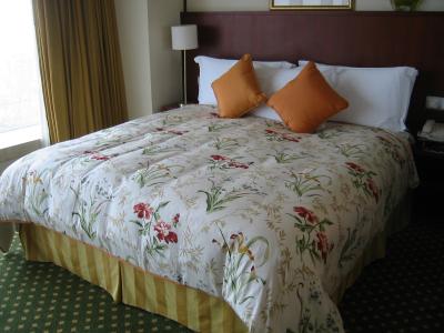 さて、ホテルに到着。この花柄のシーツが超かわいい!!同じの欲しい!!