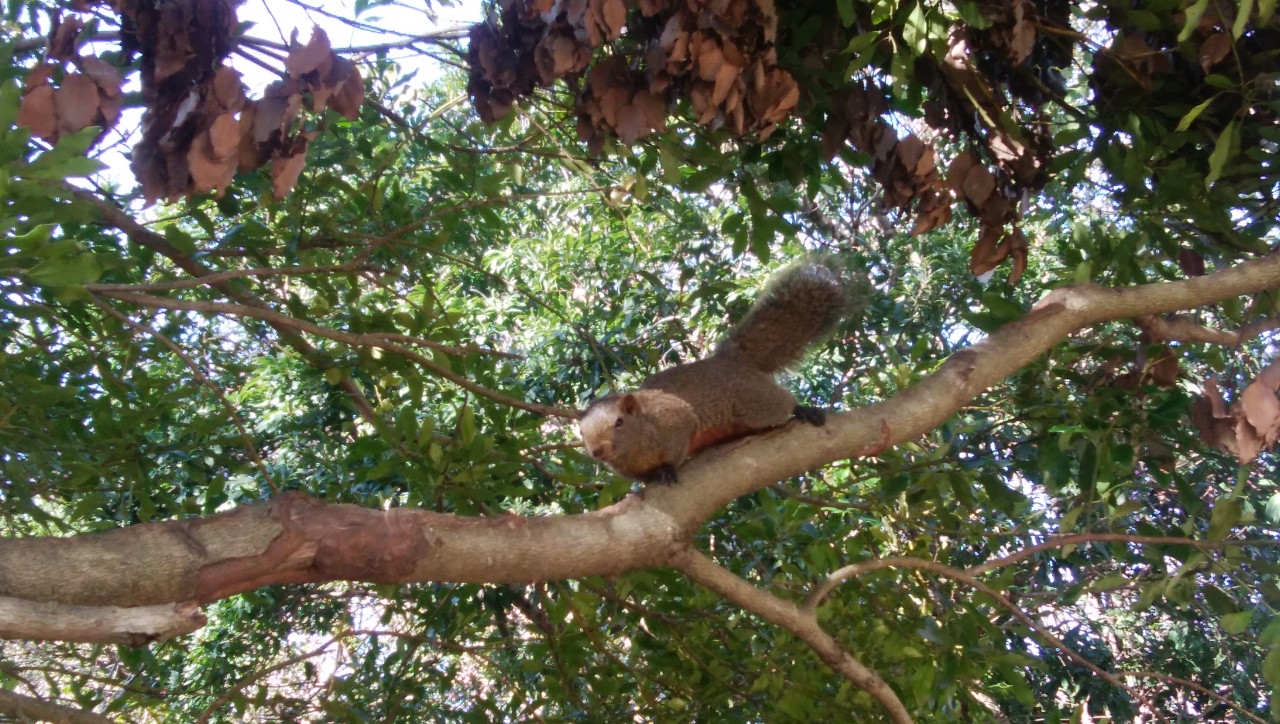 野生のリスがたくさんいて子供たちは大はしゃぎ。